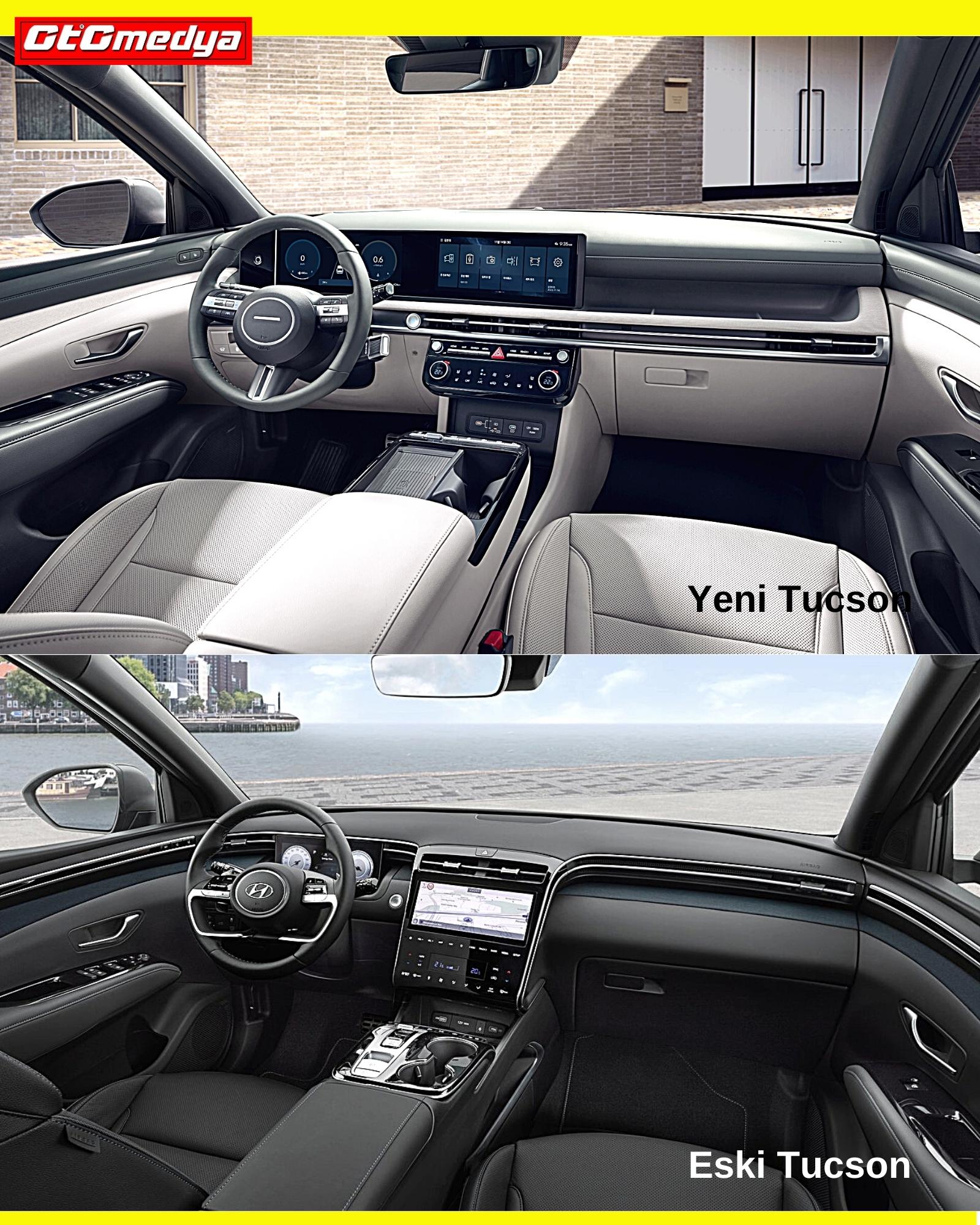 Jantların yenilendiğinden ve bunun araca dinamik bir hava kattığından bahsediliyor. Değişiklikten söz etmek istiyorsak iç mekana geçmeliyiz. Kavisli led ekran gerçekten güzel olmuş.  12,3 inç bilgi, 12,3 inç eğlence ekran boyutları var. (Ancak bazılarınız eski iç mekanı daha çok beğenebilir.) Hyundai Tucson Türkiye’de piyasaya sunulduğun-dan bu tarafa 74.551 adet sattı. 2022 yılında AB’de 1. oldu ama Türkiye’de 4. olabildi.