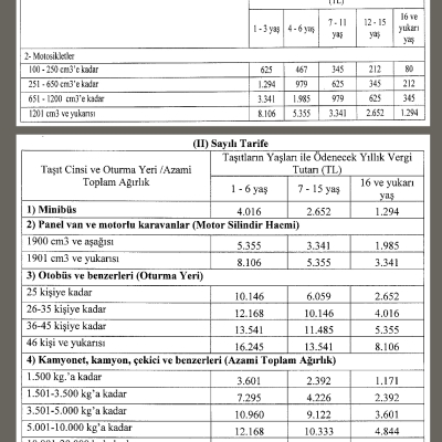 Tablodaki taşıt değerinin yanlış-lığından bahsetmek gerekiyor. Bu değerler 2 yıl öncesinin değerleri. Örneğin motor hacmi 1300 cc’yi geçmeyen otomobiller için değeri 180.600 TL’yi aşmayalar sınıfına giren bir tane bile araç yok. Şu anda Türkiye’de satılan en ucuz otomobil zaten 800.000 TL seviyesinde. Düzeltme... (Lütfen!)