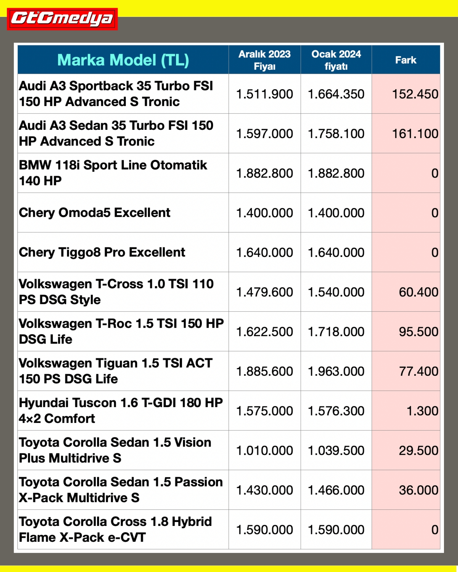 Bazı okuyucularımız firmaları takip etmemizi ve fiyatlarını yükseltenlerden bahsetmemizi istemişti. Bu akşama kadar bekledik ancak; daha önce listemizde yer alan Citroen, Renault, Opel ve Peugeot’da “Fiyatlar güncellenmektedir” yazıyordu. Biz de fiyatı belli olanlar üzerinden hareket edelim istedik. Zaten bir önceki haberin en önemli modeli Audi A3 idi. Şimdi gelinen noktada engelli raporu ile Audi A3 alınamıyor.