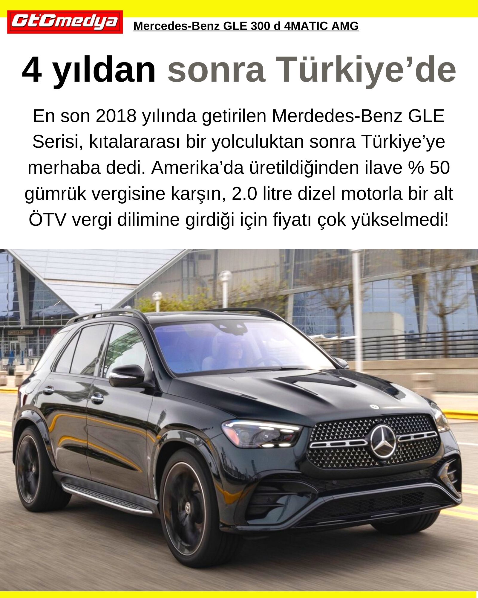 En son 2018 yılında getirilen Merdedes-Benz GLE Serisi, kıtalararası bir yolculuktan sonra Türkiye’ye merhaba dedi. Amerika’da üretildiğinden ilave % 50 gümrük vergisine karşın, 2.0 litre dizel motorla bir alt ÖTV vergi dilimine girdiği için fiyatı çok yükselmedi!