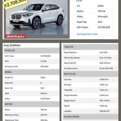 BMW X1 ve X2 modelleri Türkiye’ye zaten yüksek bir fiyat-tan girmişlerdi. Aylar öncesinden yaptığımız haberde BMW iX1'in % 10 ÖTV diliminde satılabileceğini belirtmiştik. Şu an BMW iX1 eDrive20 X Line 2.708.000 TL’ye satılıyor. Hiç olmazsa piyasaya ilk girdiği zamanlarda 1.900.000 TL seviyesinden satılabilirdi. Aynı şekilde BMW iX2 eDrive20 M Sport modelinin şu anki fiyatı 2.772.000 TL ancak; bu model de daha ucuza satılabilirdi.
