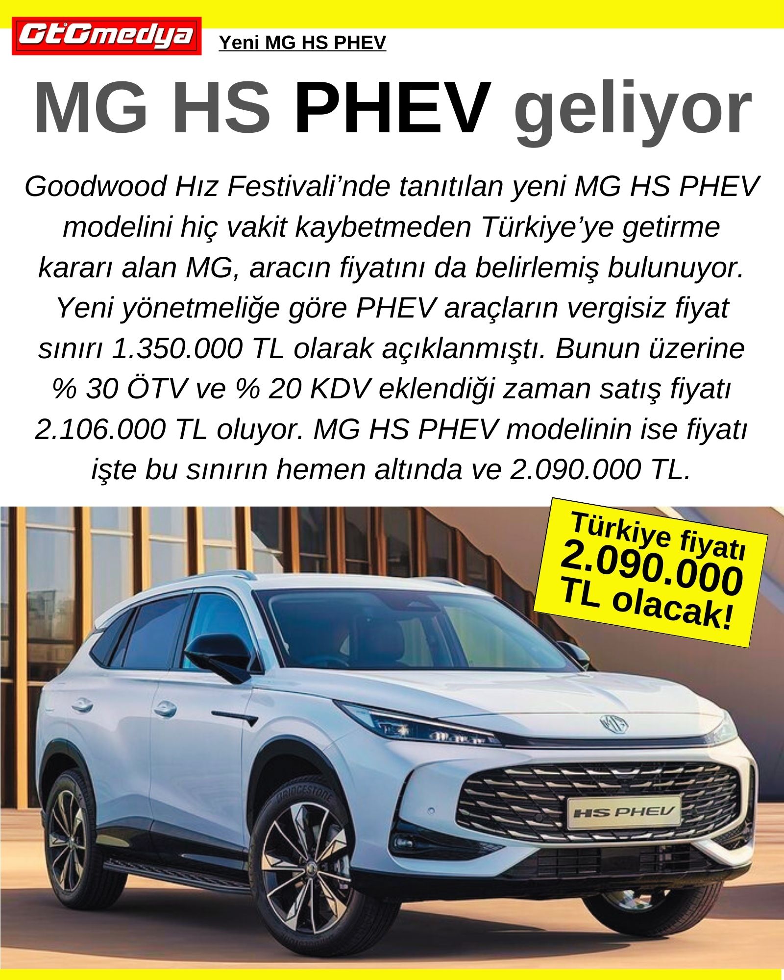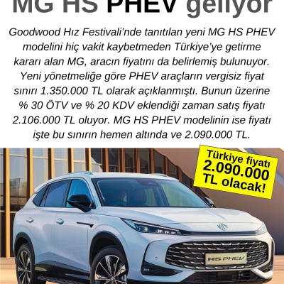 Goodwood Hız Festivali’nde tanıtılan yeni MG HS PHEV modelini hiç vakit kaybetmeden Türkiye’ye getirme kararı alan MG, aracın fiyatını da belirlemiş bulunuyor. MG HS PHEV modelinin fiyatı 2.090.000 TL olarak tespit edildi. Ayrıca Geely’nin Volvo’yu satın aldıktan sonra alt marka olarak oluşturduğu LYNK&CO'nun “01” modeli de Türkiye pazarında 2.099.000 TL’den satılmaya başlandı.