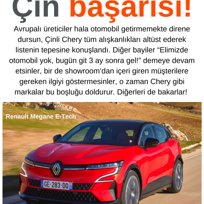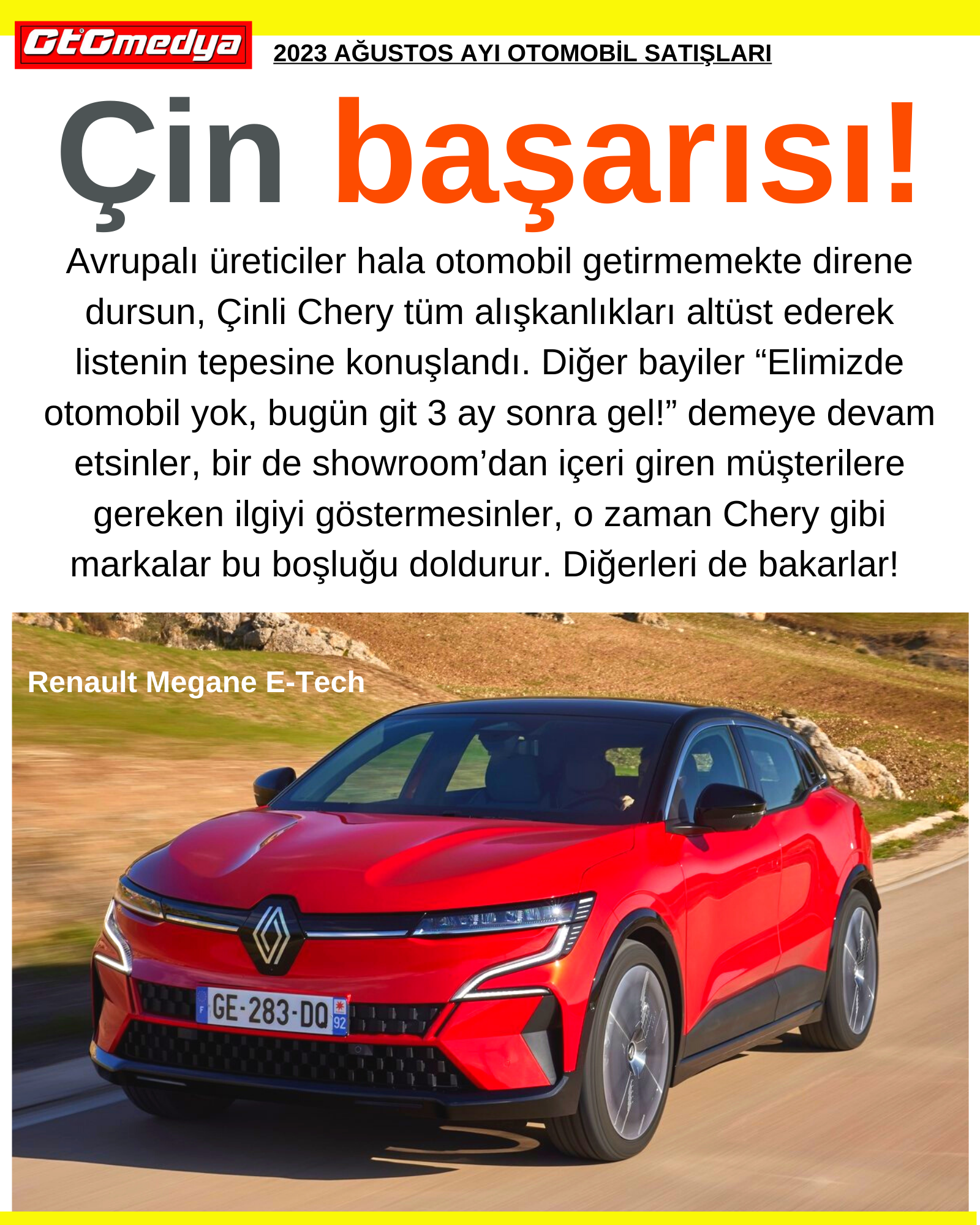 Avrupalı üreticiler hala otomobil getirmemekte direne dursun, Çinli Chery tüm alışkanlıkları altüst ederek listenin tepesine konuşlandı. Diğer bayiler “Elimizde otomobil yok, bugün git 3 ay sonra gel!” demeye devam etsinler, kaybeden onlar olurlar!