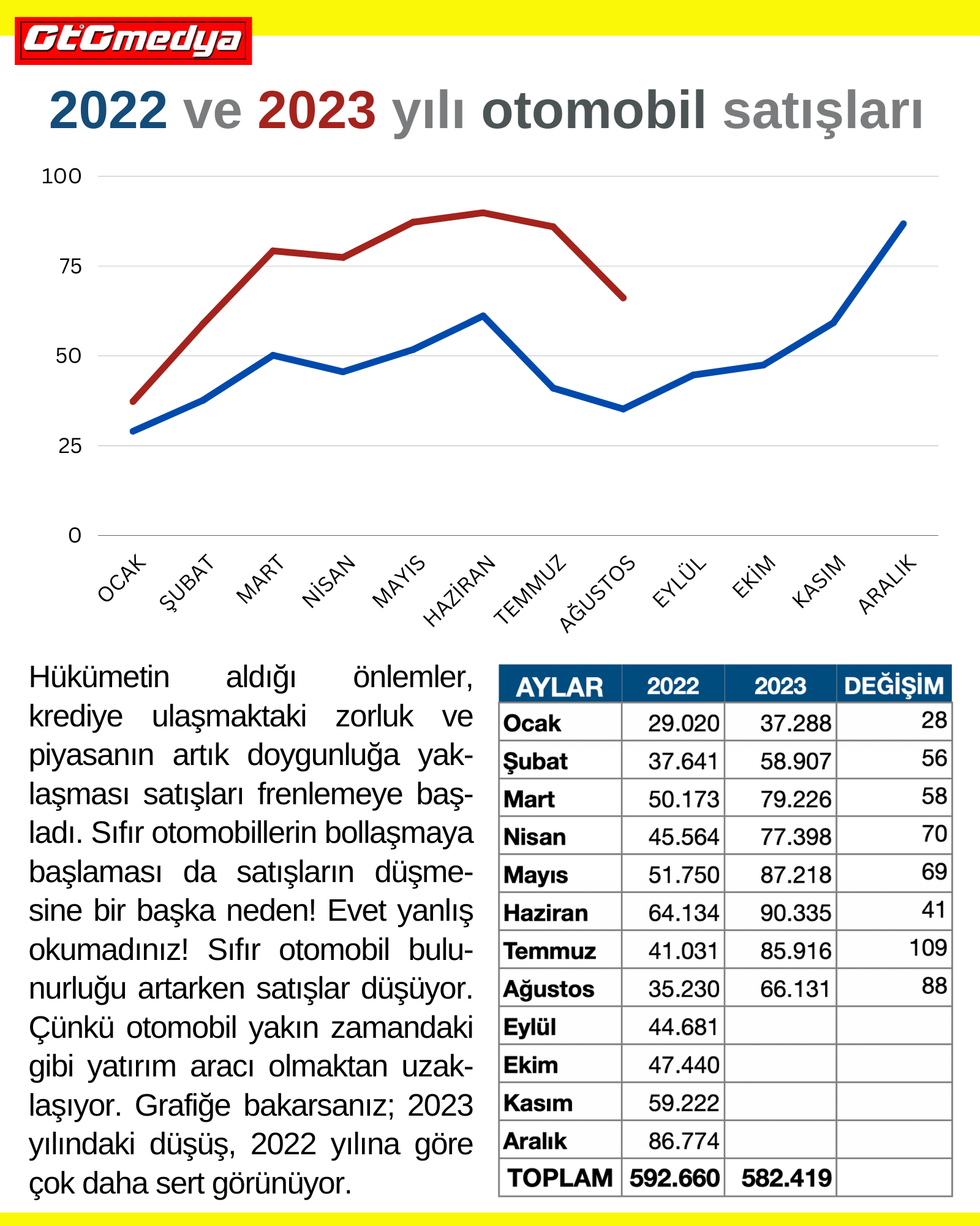 Hükümetin aldığı önlemler, krediye ulaşmaktaki zorluk ve piyasanın artık doygunluğa yaklaşması satışları frenlemeye başladı. Sıfır otomobillerin bollaşmaya başlaması da satışların düşmesine bir başka neden!