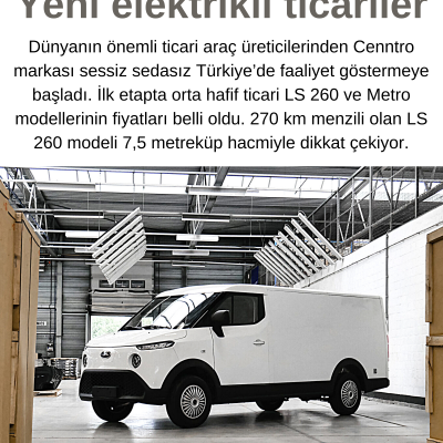 Dünyanın önemli ticari araç üreticilerinden Cenntro markası sessiz sedasız Türkiye’de faaliyet göstermeye başladı. İlk etapta orta hafif ticari LS260 ve Metro modellerinin fiyatları belli oldu. 270 km menzili olan LS260 modeli 7,5 metreküp hacmiyle dikkat çekiyor.