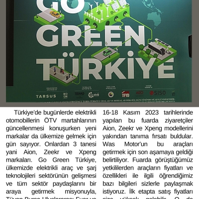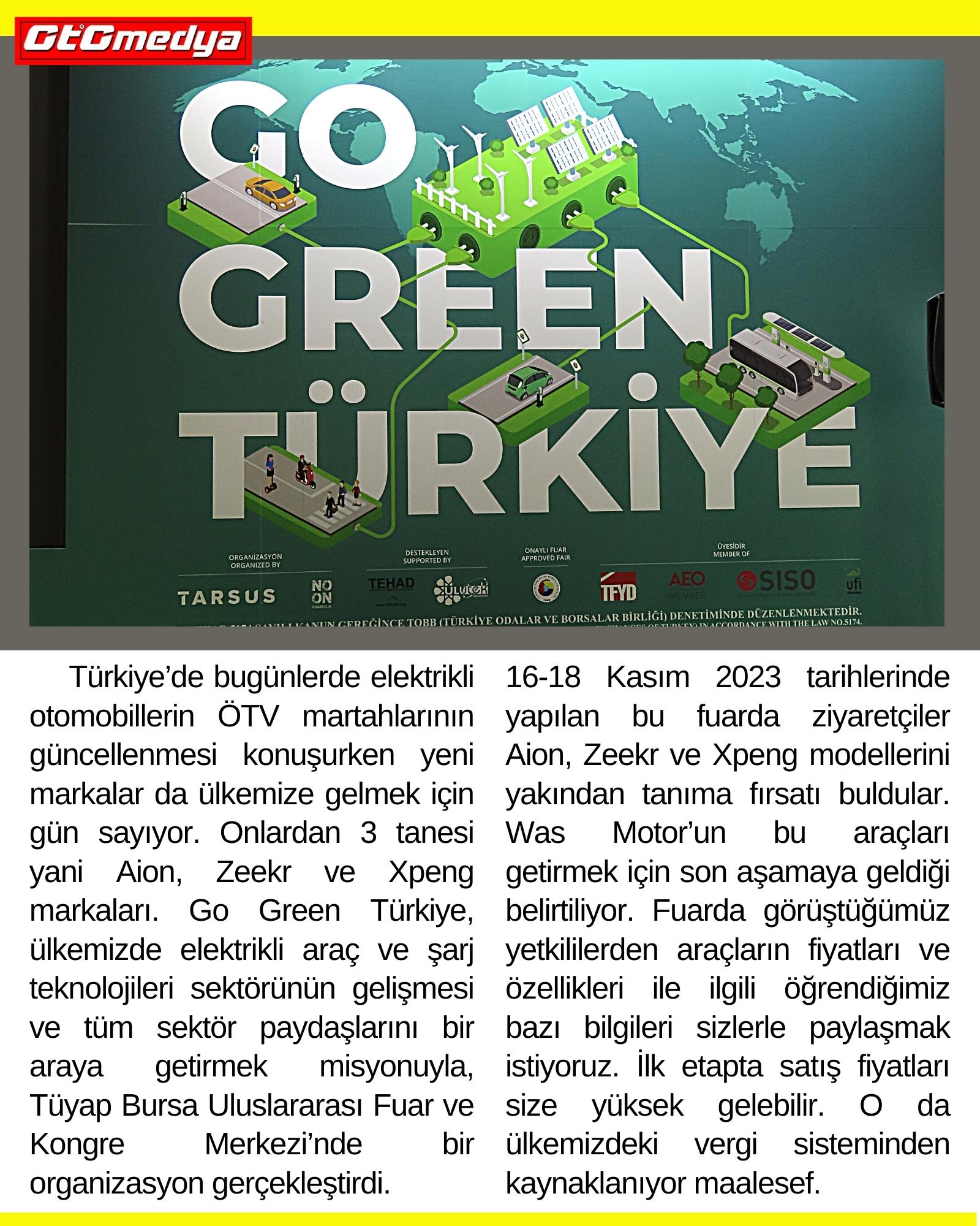 Türkiye’de bugünlerde elektrikli otomobillerin ÖTV martahlarının güncellenmesi konuşulurken yeni markalar da ülkemize gelmek için gün sayıyor. Onlardan 3 tanesi yani Aion, Zeekr ve Xpeng markaları oldu. Go Green Türkiye, ülkemizde elektrikli araç ve şarj teknolojileri sektörünün gelişmesi ve tüm sektör paydaşlarını bir araya getirmek misyonuyla, Tüyap Bursa Uluslararası Fuar ve Kongre Merkezi’nde bir organizasyon gerçekleştirdi. 16-18 Kasım 2023 tarihlerinde yapılan bu fuarda ziyaretçiler Aion, Zeekr ve Xpeng modellerini yakından tanıma fırsatı buldular. Was Motor’un bu araçları getirmek için son aşamaya geldiği belirtiliyor.