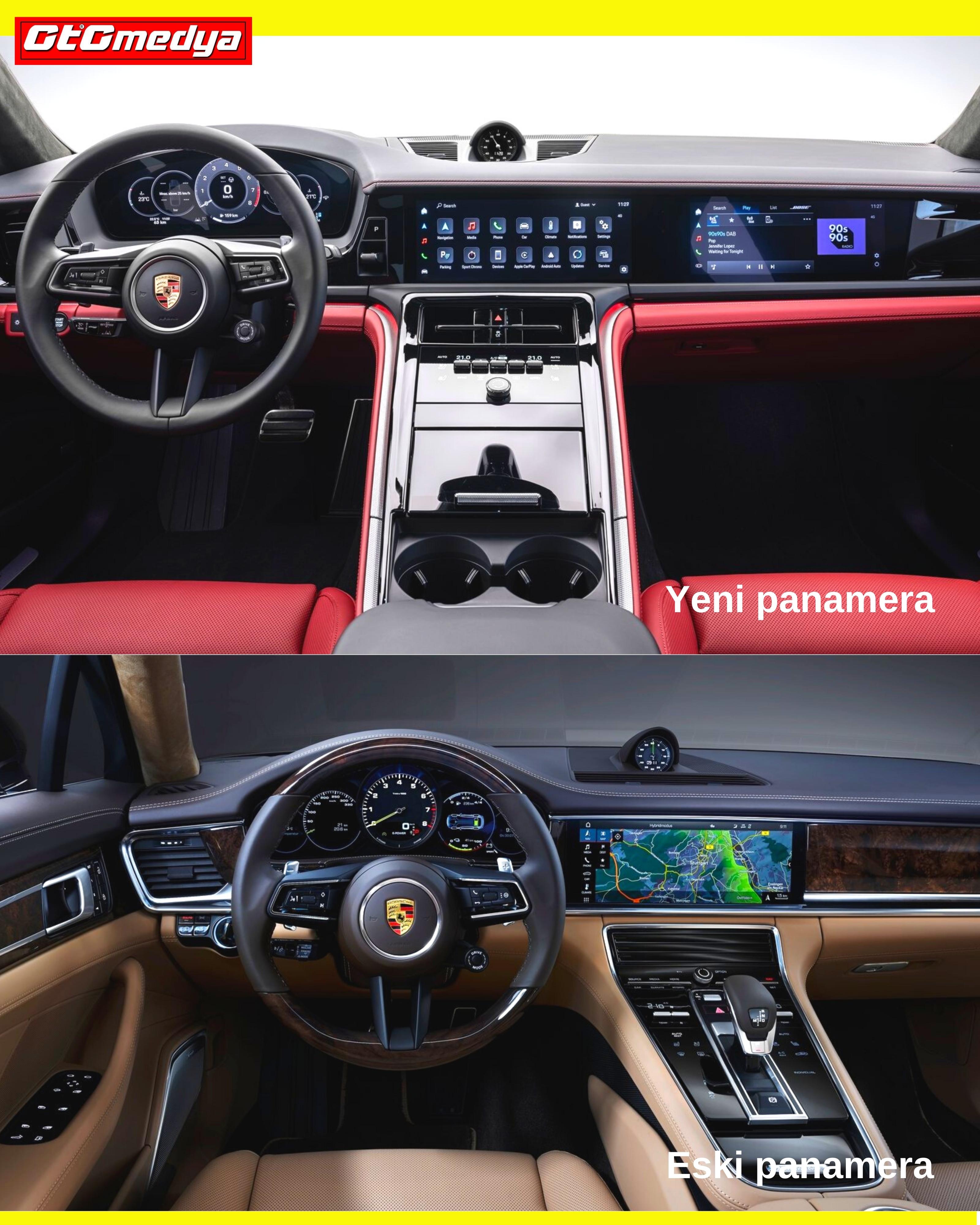 Dışarıdan bakıldığında farların yapısının ve ön tamponun değiştiği görülüyor. Profilde pek değişiklik olmazken arka stop lambalarında küçük dokunuşlar var. İç mekanda artık vites topuzunun olmaması dikkat çekiyor. İsteğe bağlı olarak yolcu tarafında 10.9 inç ölçülerinde bir ekran da tercih edilebiliyor. Uzunluğu 5.052 mm olan yeni Panamera’nın 15 cm ekstra uzun bir versiyonu daha var. Aracın genişliği 1.937 mm ve yüksekliği 1.423 mm.