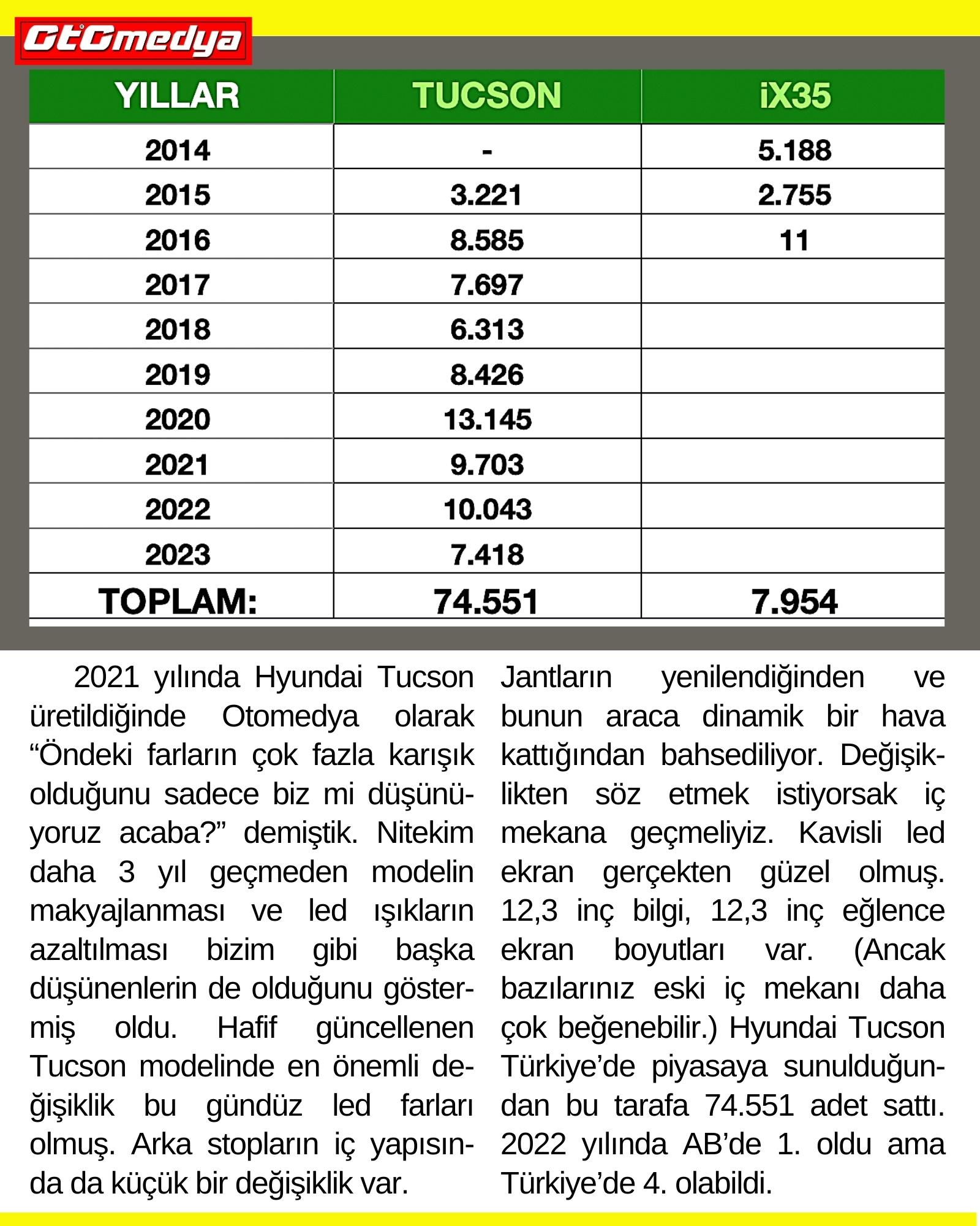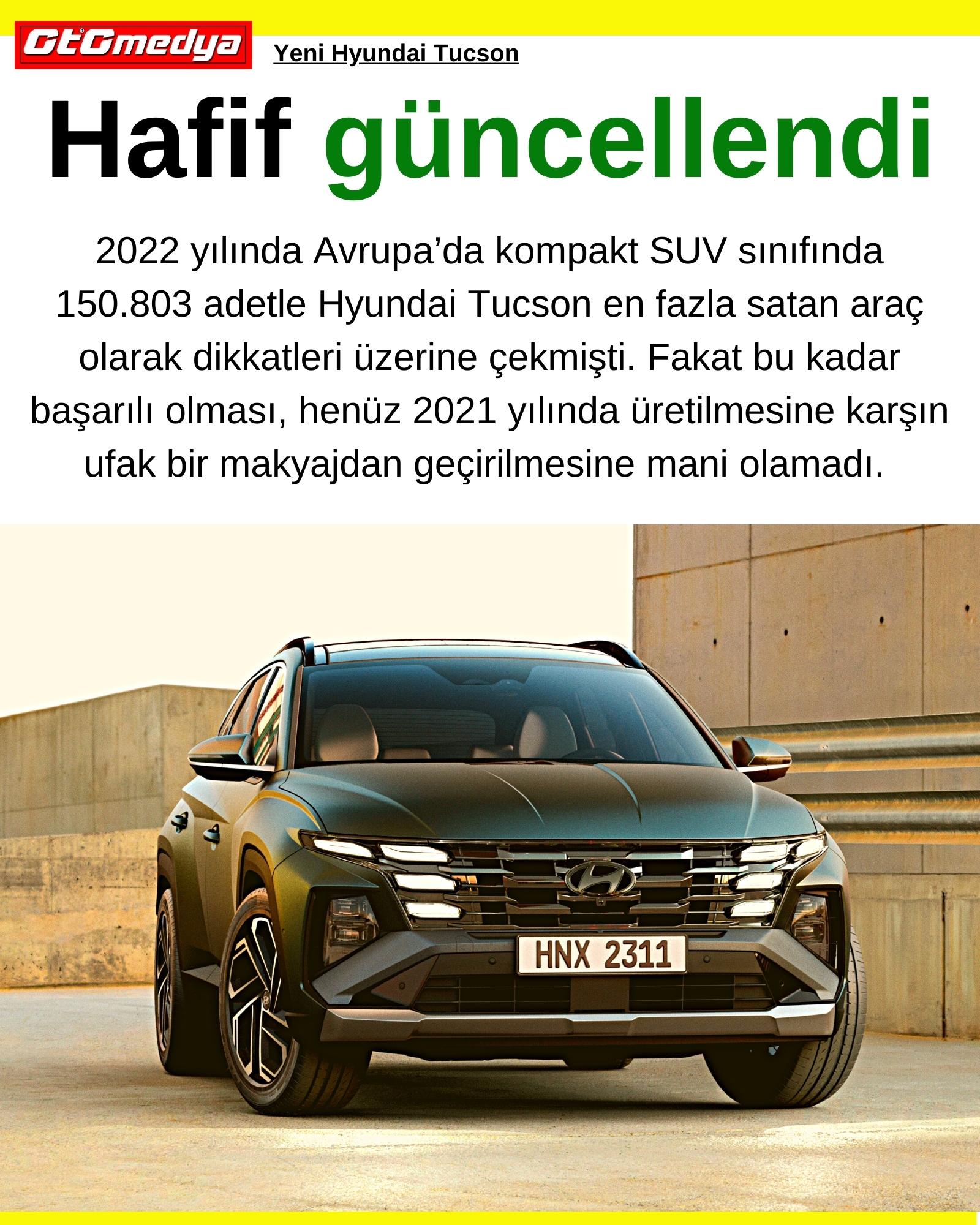 2022 yılında Avrupa’da kompakt SUV sınıfında 150.803 adetle Hyundai Tucson en fazla satan araç olarak dikkatleri üzerine çekmişti. Fakat bu kadar başarıya ulaşması, henüz 2021 yılında üretilmesine karşın ufak bir makyajdan geçirilmesine mani olamadı.