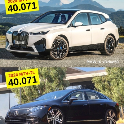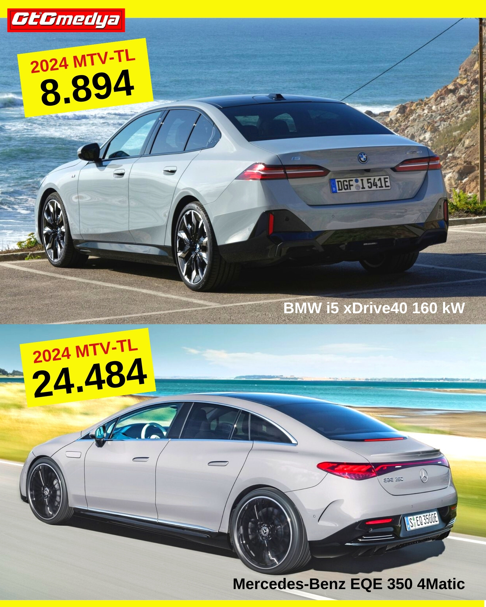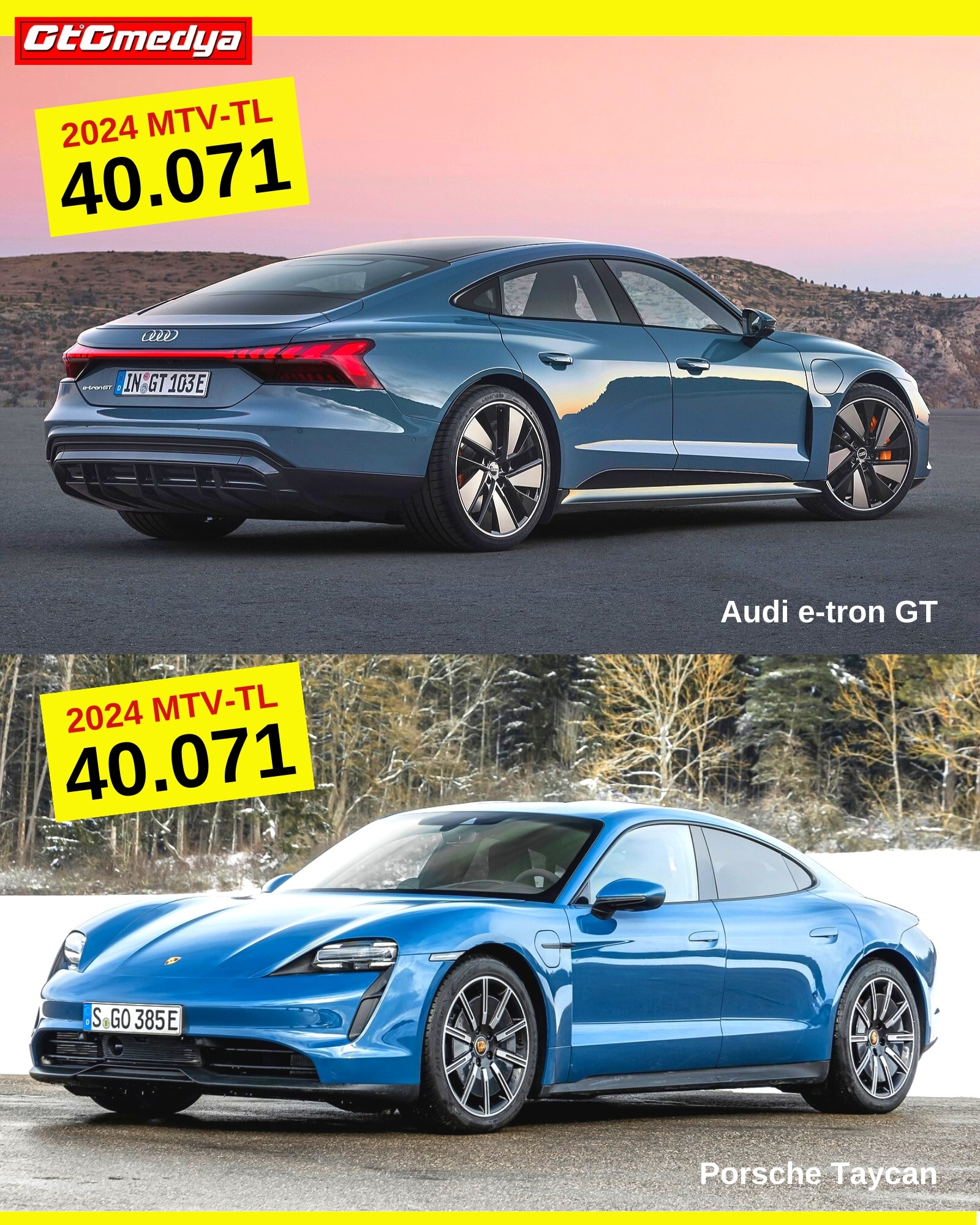 Audi e-tron GT ve Porsche Taycan da 40.071 TL vergi ödeyecek otomobillerden. BMW iX3 eDrive20 (120 kW) modeli 4.887 TL MTV ödeyecekken BMW iX1 xDrive30 (230 kW) modelinin ise 24.485 TL vergi ödeyecek olması ilginç. Citroen eC4X 115 kW, Opel Astra 115 kW Elektrik, Peugeot E-2008 GT 115kW gibi araçların ödeyeceği MTV 4.888 TL seviyesinde olacak. MG4 Comfort (125 kW) modeli 7.333 TL vergi ödeyecek.
