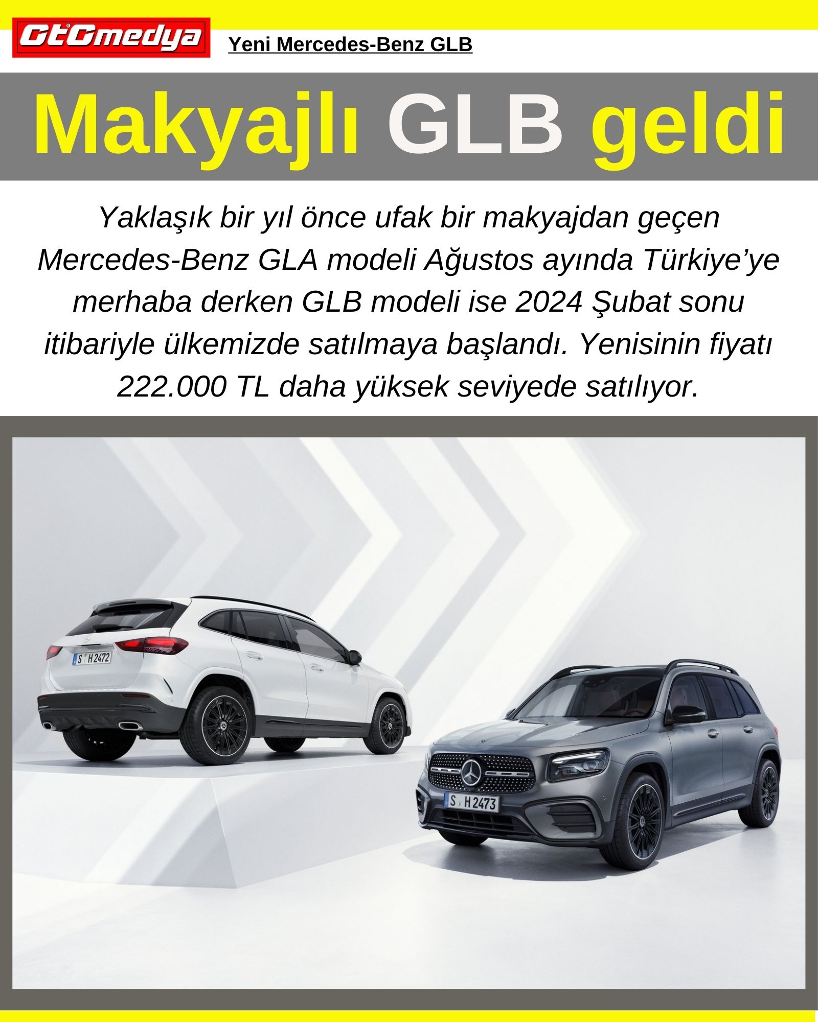 Yaklaşık bir yıl önce ufak bir makyajdan geçen Mercedes-Benz GLA modeli Ağustos ayında Türkiye’ye merhaba derken GLB modeli ise 2024 Şubat sonu itibariyle ülkemizde satılmaya başlandı. Yenisinin fiyatı 222.000 TL daha yüksek seviyede!
