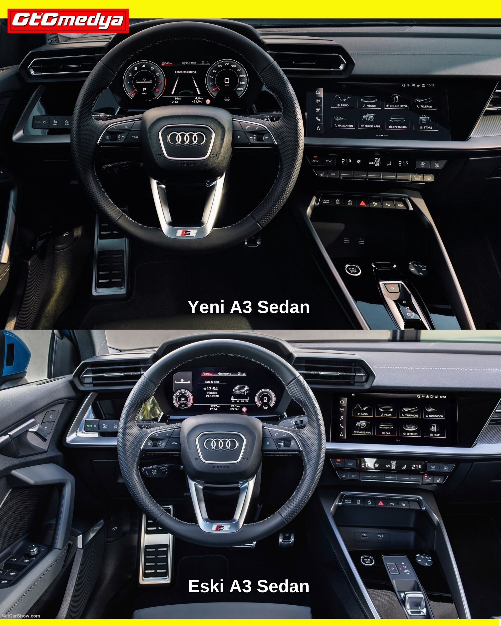 Dikkat ettiyseniz Audi markası son yıllarda modellerinde radikal değişikliklere pek gitmiyor. Düşünsenize 4 yıl geçmesine rağmen A3, ancak küçük bir makyajdan geçiriliyor. İlk bakışta ön ve arka tamponların değiştiğini fark edebilirsiniz. Far ve stopların yanma şekilleri değişmiş. İç mekanda ise vites butonunun olduğu konsolun elden geçirildiğini anlıyoruz. İç mekan kalitesinin artırıldığından bahsediliyor. Ayrıca donanımı da zenginleştirilmiş.