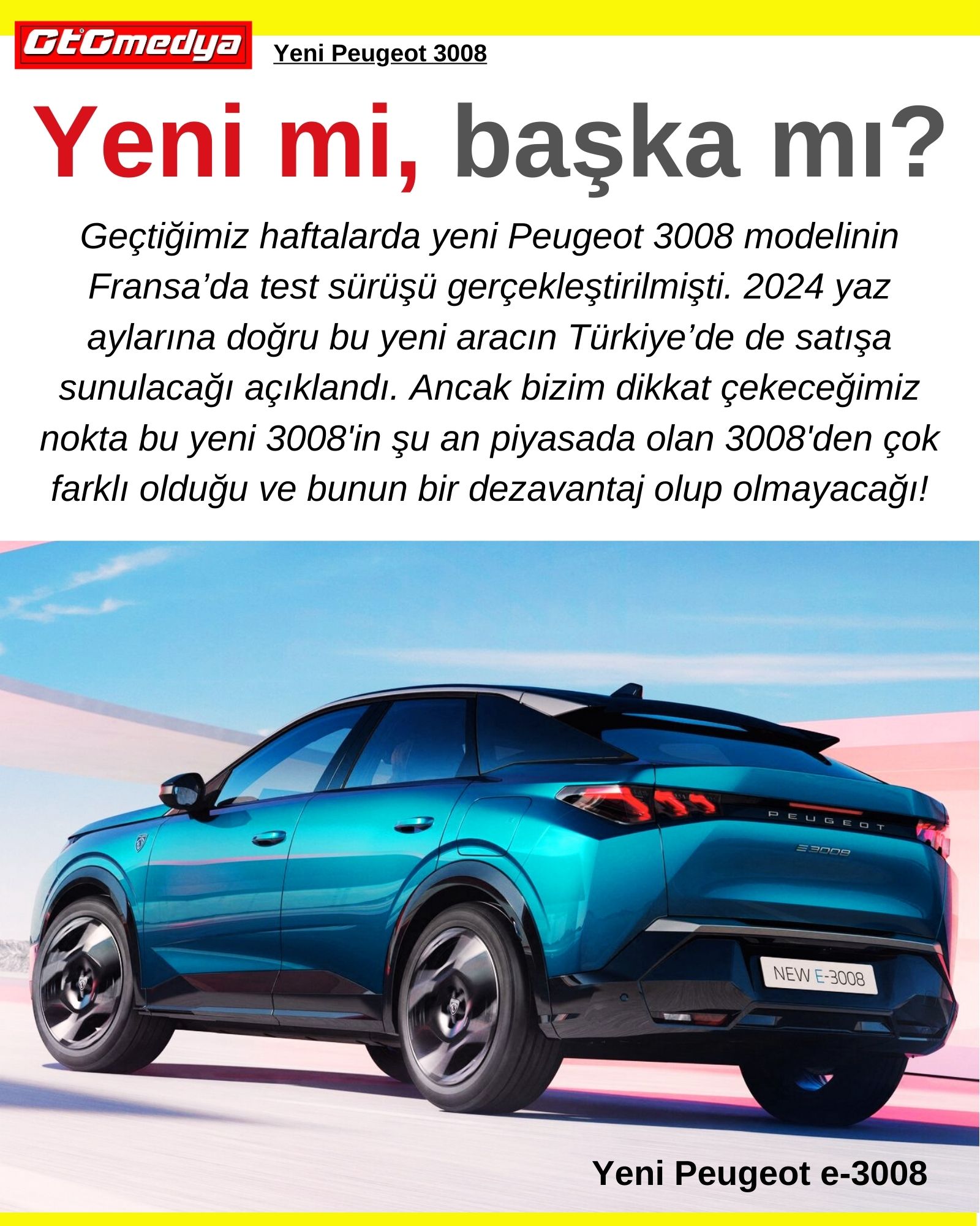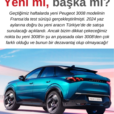 Geçtiğimiz haftalarda yeni Peugeot 3008 modelinin Fransa’da test sürüşü gerçekleştirilmişti. 2024 yaz aylarına doğru bu yeni aracın Türkiye’de de satışa sunulacağı açıklandı. Ancak bizim dikkat çekeceğimiz nokta bu yeni 3008'in şu an piyasada olan 3008'den çok farklı olduğu ve bunun bir dezavantaj olup olmayacağı!