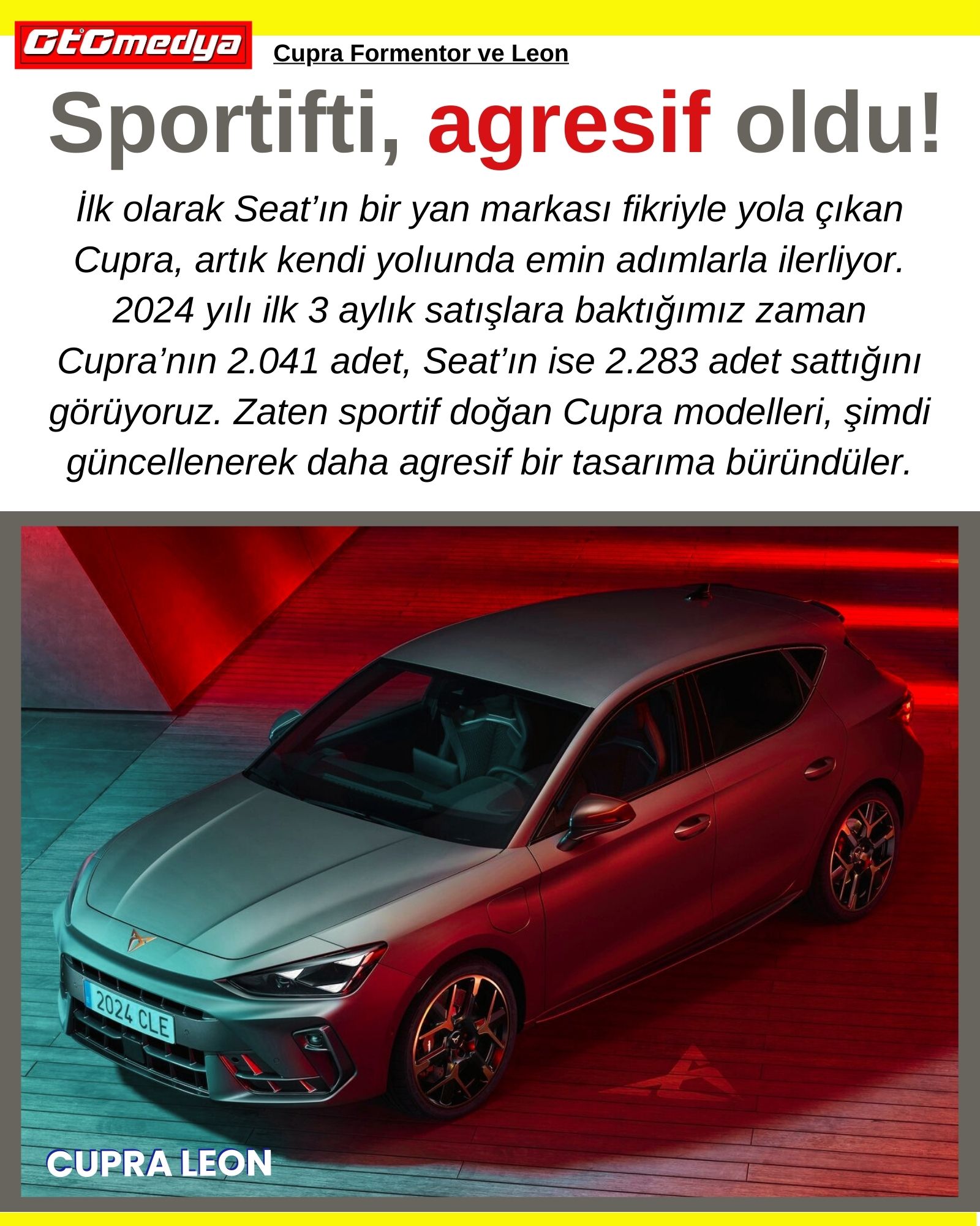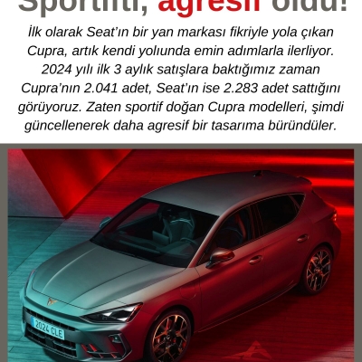 İlk olarak Seat’ın bir yan markası fikriyle yola çıkan Cupra, artık kendi yolıunda emin adımlarla ilerliyor. 2024 yılı ilk 3 aylık satışlara baktığımız zaman Cupra’nın 2.041 adet, Seat’ın ise 2.283 adet sattığını görüyoruz. Zaten sportif doğan Cupra modelleri, şimdi güncellenerek daha agresif bir tasarıma büründüler.