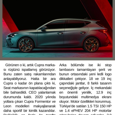 Görünen o ki, artık Cupra marka-sı rüştünü ispatlamış görünüyor. Bunu zaten satış rakamlarından anlayabiliyoruz. Hatta bir ara Cupra o kadar ön plana çıktı ki, Seat markasının kapatılacağından bile bahsedildi. CEO yalanlamak durumunda kaldı. 2020 yılında yollara çıkan Cupra Formentor ve Leon modelleri makyajlanarak daha sportif bir kimlik kazandılar. Değişiklik en fazla ön tarafta kendini gösteriyor. Yeni tampon tasarımı çok daha agresif olmuş.