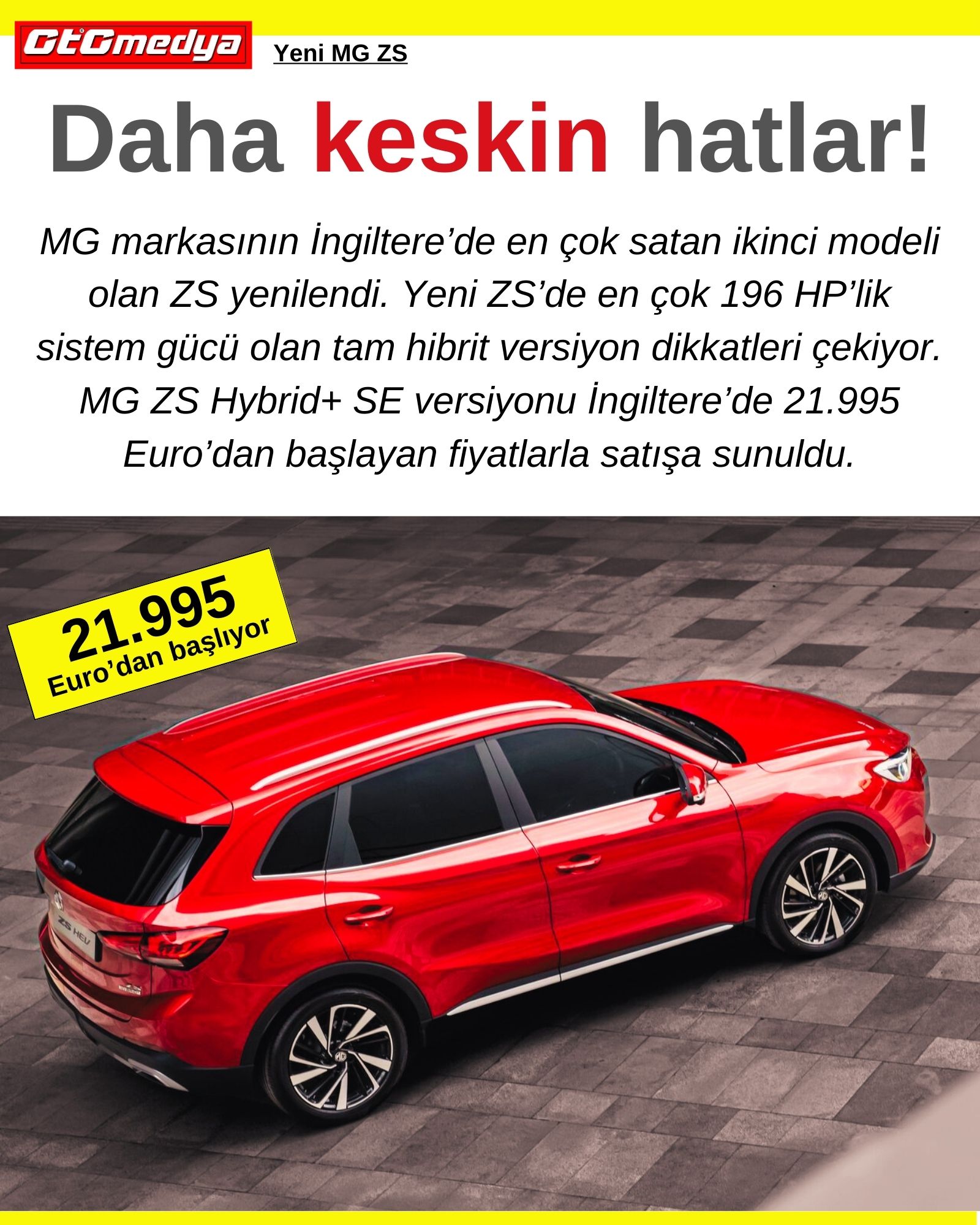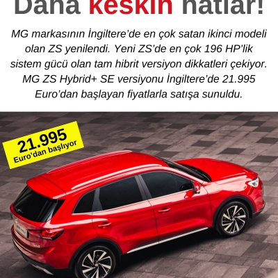 MG markasının İngiltere’de en çok satan ikinci modeli olan ZS yenilendi. Yeni ZS’de en çok 196 HP’lik sistem gücü olan tam hibrit versiyon dikkatleri çekiyor. MG ZS Hybrid+ SE versiyonu İngiltere’de 21.995 Pound’tan başlayan fiyatlarla satışa sunuldu.