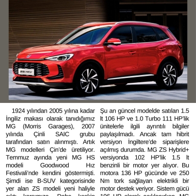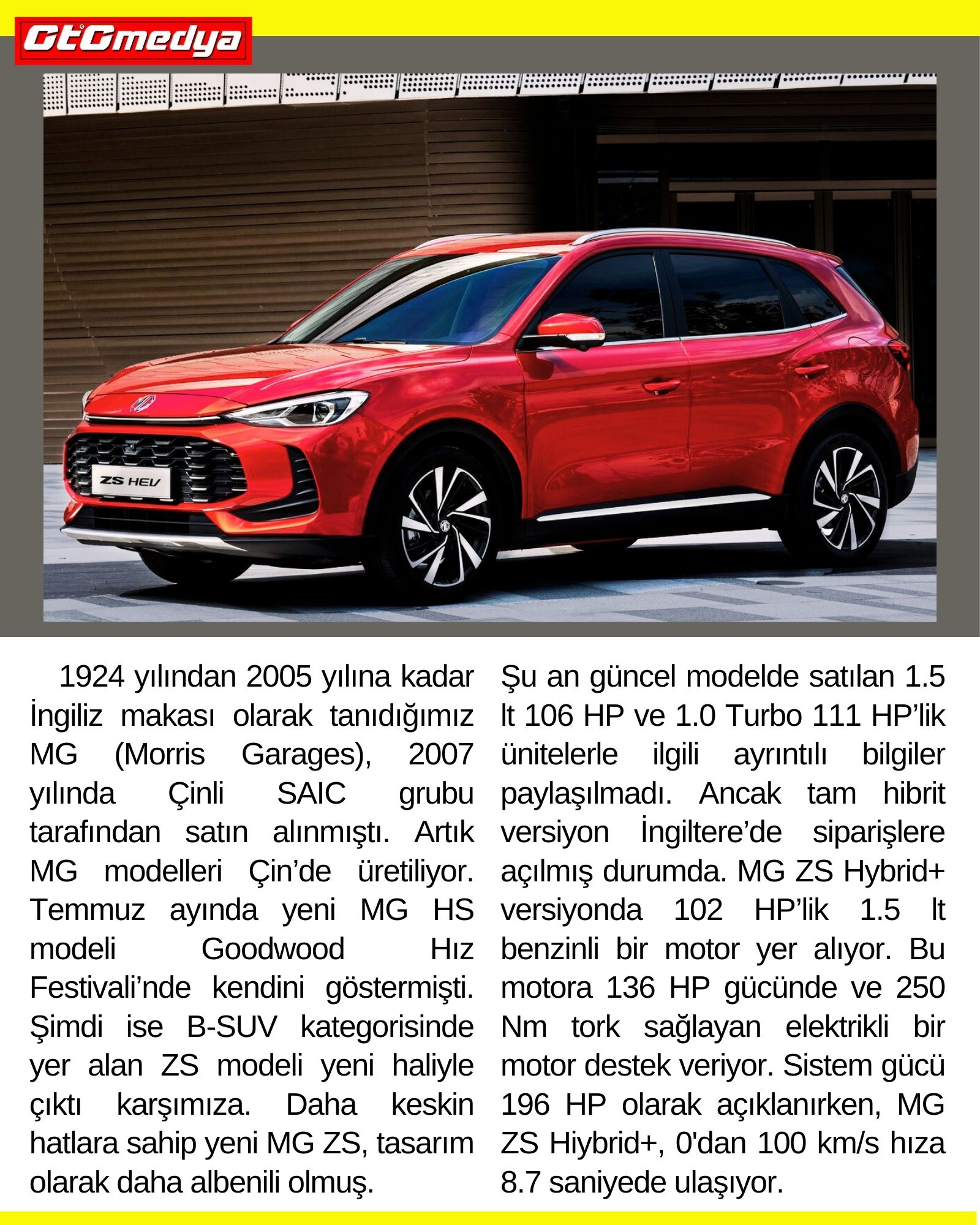 Şu an güncel modelde satılan 1.5 lt 106 HP ve 1.0 Turbo 111 HP’lik ünitelerle ilgili ayrıntılı bilgiler paylaşılmadı. Ancak tam hibrit versiyon İngiltere’de siparişlere açılmış durumda. MG ZS Hybrid+ versiyonda 102 HP’lik 1.5 lt benzinli bir motor yer alıyor. Bu motora 136 HP gücünde ve 250 Nm tork sağlayan elektrikli bir motor destek veriyor. Sistem gücü 196 HP olarak açıklanırken, MG ZS Hiybrid+, 0'dan 100 km/s hıza 8.7 saniyede ulaşıyor.