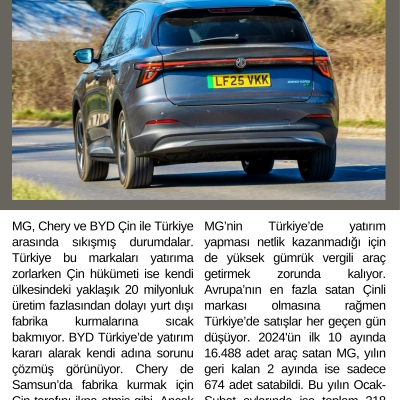 MG, Chery ve BYD Çin ile Türkiye arasında sıkışmış durumdalar. Türkiye bu markaları yatırıma zorlarken Çin hükümeti ise kendi ülkesindeki yaklaşık 20 milyonluk üretim fazlasından dolayı yurt dışı fabrika kurmalarına sıcak bakmıyor. BYD Türkiye’de yatırım kararı alarak kendi adına sorunu çözmüş görünüyor. Chery de Samsun’da fabrika kurmak için Çin tarafını ikna etmiş gibi. Ancak MG markası için ufuk henüz “flu” görünmeye devam ediyor.