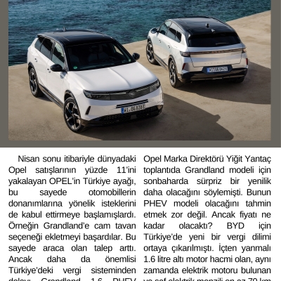 Nisan sonu itibariyle dünyadaki Opel satışlarının yüzde 11’ini yakalayan OPEL’in Türkiye ayağı, bu sayede otomobillerin donanımlarına yönelik isteklerini de kabul ettirmeye başlamışlardı. Örneğin Grandland’e cam tavan seçeneği ekletmeyi başardılar. Bu sayede araca olan talep arttı. Ancak daha da önemlisi Türkiye’deki vergi sisteminden dolayı Grandland 1.6 PHEV modelinin % 30 ÖTV dilimine girecek şekilde getirilebilmesiydi.